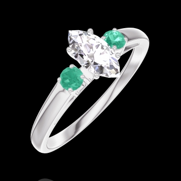 « L'ATELIER » Nº160583Pierścionek Białe złoto 750 - Diament Markiza 0.3 karat - Kamienie boczne Szmaragd