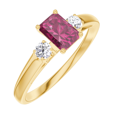 « L'ATELIER » NR 160821Pierścionek Żółte złoto 750 - Rubin Prostokąt 0.3 karat - Kamienie boczne Diament