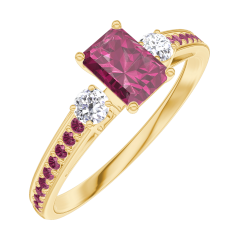 Pierścionek Żółte złoto 375 - Rubin Prostokąt 0.3 karat - Kamienie boczne Diament - Oprawa Rubin