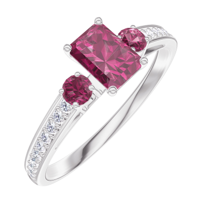 « L'ATELIER » NR 160848Pierścionek Białe złoto 375 - Rubin Prostokąt 0.3 karat - Kamienie boczne Rubin - Oprawa Diament