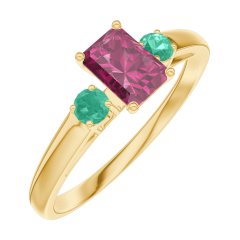 Pierścionek Żółte złoto 375 - Rubin Prostokąt 0.3 karat - Kamienie boczne Szmaragd