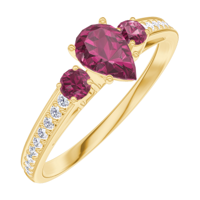 « L'ATELIER » NR 161046Pierścionek Żółte złoto 375 - Rubin Gruszka 0.3 karat - Kamienie boczne Rubin - Oprawa Diament