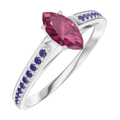 Pierścionek Białe złoto 375 - Rubin Markiza 0.3 karat - Oprawa Niebieski szafir