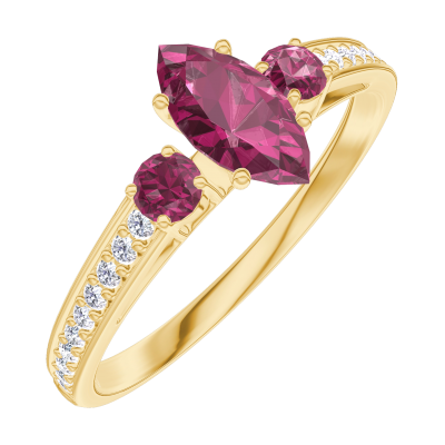 « L'ATELIER » NR 161146Pierścionek Żółte złoto 375 - Rubin Markiza 0.3 karat - Kamienie boczne Rubin - Oprawa Diament
