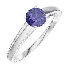 Pierścionek Białe złoto 750 - Niebieski szafir okrągły 0.3 karat