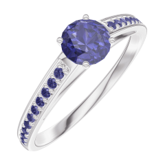 Pierścionek Białe złoto 375 - Niebieski szafir okrągły 0.3 karat - Oprawa Niebieski szafir