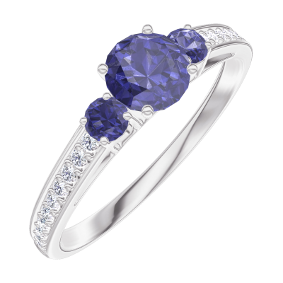 « L'ATELIER » Nº161267Pierścionek Białe złoto 750 - Niebieski szafir okrągły 0.3 karat - Kamienie boczne Niebieski szafir - Oprawa Diament 4.8