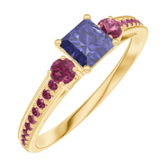 Pierścionek Żółte złoto 375 - Niebieski szafir „Księżniczka” 0.3 karat - Kamienie boczne Rubin - Oprawa Rubin