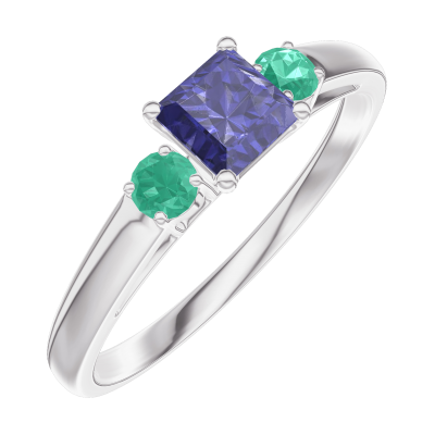 « L'ATELIER » NR 161383Pierścionek Białe złoto 750 - Niebieski szafir „Księżniczka” 0.3 karat - Kamienie boczne Szmaragd