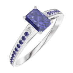 Pierścionek Białe złoto 750 - Niebieski szafir Prostokąt 0.3 karat - Oprawa Niebieski szafir
