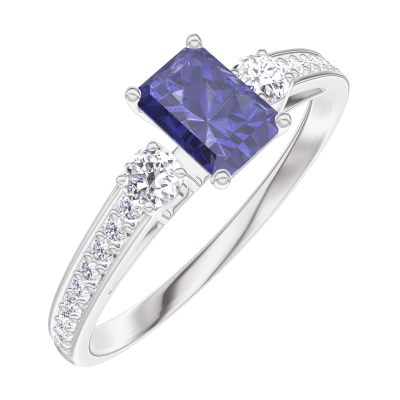 « L'ATELIER » NR 161428Pierścionek Białe złoto 375 - Niebieski szafir Prostokąt 0.3 karat - Kamienie boczne Diament - Oprawa Diament