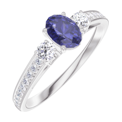 Pierścionek Białe złoto 375 - Niebieski szafir Owal 0.3 karat - Kamienie boczne Diament - Oprawa Diament