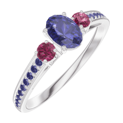 Pierścionek Białe złoto 750 - Niebieski szafir Owal 0.3 karat - Kamienie boczne Rubin - Oprawa Niebieski szafir