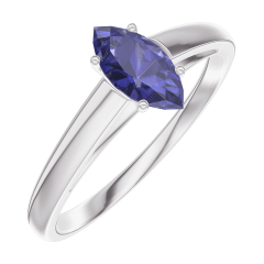 Pierścionek Białe złoto 375 - Niebieski szafir Markiza 0.3 karat