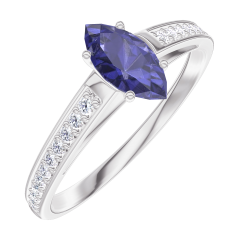 Pierścionek Białe złoto 375 - Niebieski szafir Markiza 0.3 karat - Oprawa Diament