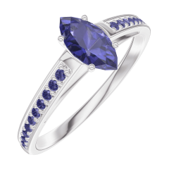 Pierścionek Białe złoto 375 - Niebieski szafir Markiza 0.3 karat - Oprawa Niebieski szafir
