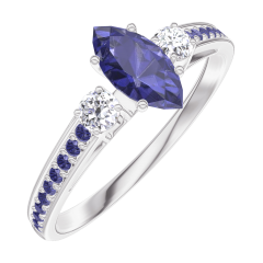 « L'ATELIER » NR 161736Pierścionek Białe złoto 375 - Niebieski szafir Markiza 0.3 karat - Kamienie boczne Diament - Oprawa Niebieski szafir