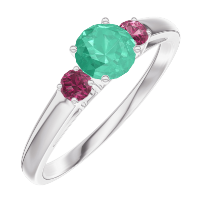 « L'ATELIER » NR 161843Pierścionek Białe złoto 750 - Szmaragd okrągły 0.3 karat - Kamienie boczne Rubin 4.8