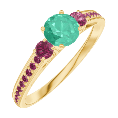 « L'ATELIER » NR 161850Pierścionek Żółte złoto 375 - Szmaragd okrągły 0.3 karat - Kamienie boczne Rubin - Oprawa Rubin 4.8