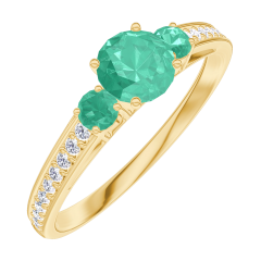 Pierścionek Żółte złoto 375 - Szmaragd okrągły 0.3 karat - Kamienie boczne Szmaragd - Oprawa Diament