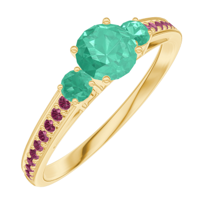 « L'ATELIER » NR 161890Pierścionek Żółte złoto 375 - Szmaragd okrągły 0.3 karat - Kamienie boczne Szmaragd - Oprawa Rubin 4.8