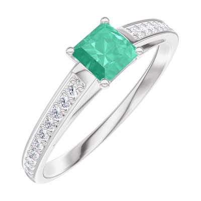 « L'ATELIER » NR 161908Pierścionek Białe złoto 375 - Szmaragd „Księżniczka” 0.3 karat - Oprawa Diament