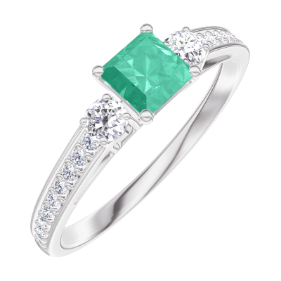 « L'ATELIER » NR 161928Pierścionek Białe złoto 375 - Szmaragd „Księżniczka” 0.3 karat - Kamienie boczne Diament - Oprawa Diament