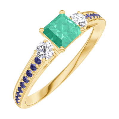 « L'ATELIER » NR 161933Pierścionek Żółte złoto 750 - Szmaragd „Księżniczka” 0.3 karat - Kamienie boczne Diament - Oprawa Niebieski szafir
