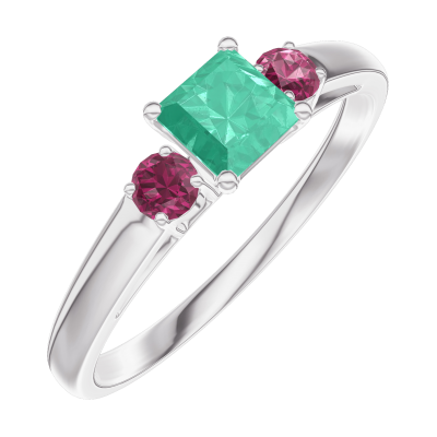 « L'ATELIER » NR 161943Pierścionek Białe złoto 750 - Szmaragd „Księżniczka” 0.3 karat - Kamienie boczne Rubin