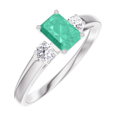« L'ATELIER » NR 162024Pierścionek Białe złoto 375 - Szmaragd Prostokąt 0.3 karat - Kamienie boczne Diament