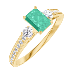 Pierścionek Żółte złoto 375 - Szmaragd Prostokąt 0.3 karat - Kamienie boczne Diament - Oprawa Diament
