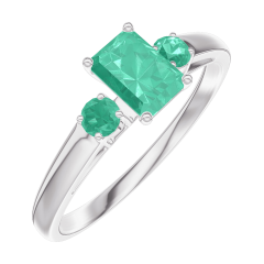 Pierścionek Białe złoto 375 - Szmaragd Prostokąt 0.3 karat - Kamienie boczne Szmaragd