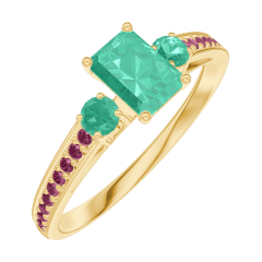 Pierścionek Żółte złoto 375 - Szmaragd Prostokąt 0.3 karat - Kamienie boczne Szmaragd - Oprawa Rubin