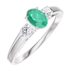 Pierścionek Białe złoto 750 - Szmaragd Owal 0.3 karat - Kamienie boczne Diament
