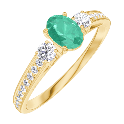 « L'ATELIER » NR 162125Pierścionek Żółte złoto 750 - Szmaragd Owal 0.3 karat - Kamienie boczne Diament - Oprawa Diament 5