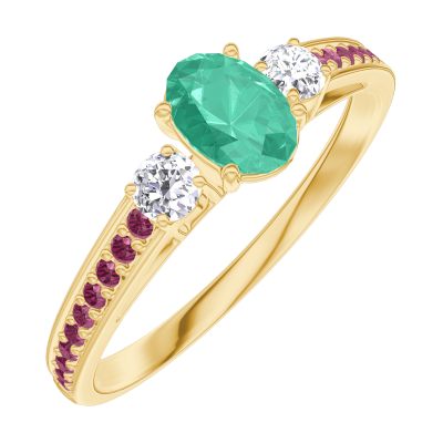 « L'ATELIER » NR 162129Pierścionek Żółte złoto 750 - Szmaragd Owal 0.3 karat - Kamienie boczne Diament - Oprawa Rubin 5