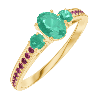 « L'ATELIER » NR 162190Pierścionek Żółte złoto 375 - Szmaragd Owal 0.3 karat - Kamienie boczne Szmaragd - Oprawa Rubin 5