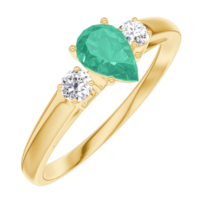 « L'ATELIER » NR 162221Pierścionek Żółte złoto 750 - Szmaragd Gruszka 0.3 karat - Kamienie boczne Diament