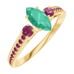 Pierścionek Żółte złoto 375 - Szmaragd Markiza 0.3 karat - Kamienie boczne Rubin - Oprawa Rubin