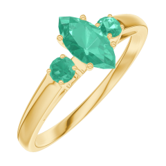 Pierścionek Żółte złoto 375 - Szmaragd Markiza 0.3 karat - Kamienie boczne Szmaragd