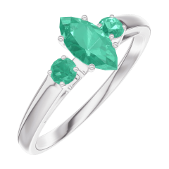 Pierścionek Białe złoto 750 - Szmaragd Markiza 0.3 karat - Kamienie boczne Szmaragd