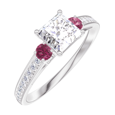 « L'ATELIER » NR 162548Pierścionek Białe złoto 375 - Diament „Księżniczka” 0.5 karat - Kamienie boczne Rubin - Oprawa Diament