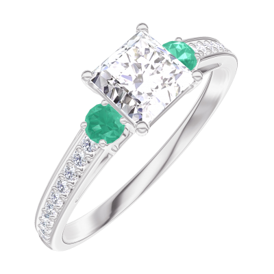 « L'ATELIER » NR 162588Pierścionek Białe złoto 375 - Diament „Księżniczka” 0.5 karat - Kamienie boczne Szmaragd - Oprawa Diament