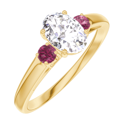 « L'ATELIER » Nº162741Pierścionek Żółte złoto 750 - Diament Owal 0.5 karat - Kamienie boczne Rubin