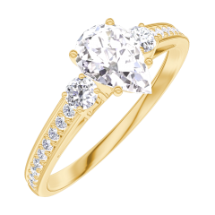 Pierścionek Żółte złoto 750 - Diament Gruszka 0.5 karat - Kamienie boczne Diament - Oprawa Diament