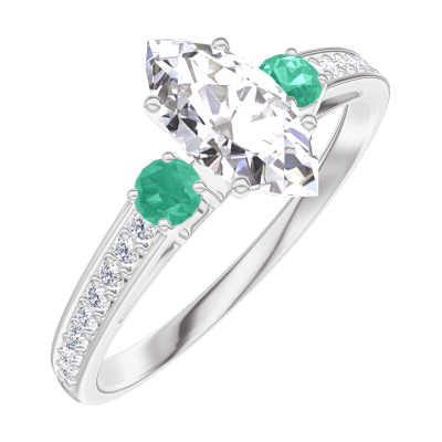 « L'ATELIER » NR 162988Pierścionek Białe złoto 375 - Diament Markiza 0.5 karat - Kamienie boczne Szmaragd - Oprawa Diament