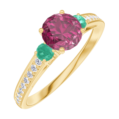 « L'ATELIER » NR 163086Pierścionek Żółte złoto 375 - Rubin okrągły 0.5 karat - Kamienie boczne Szmaragd - Oprawa Diament 4.9