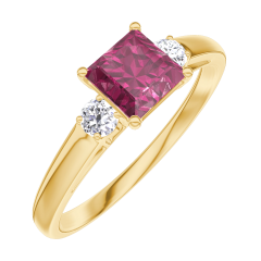 Pierścionek Żółte złoto 375 - Rubin „Księżniczka” 0.5 karat - Kamienie boczne Diament