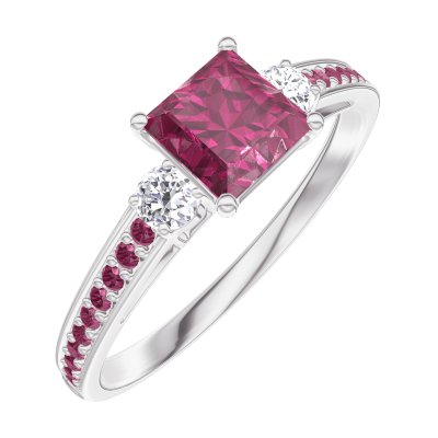 « L'ATELIER » NR 163132Pierścionek Białe złoto 375 - Rubin „Księżniczka” 0.5 karat - Kamienie boczne Diament - Oprawa Rubin