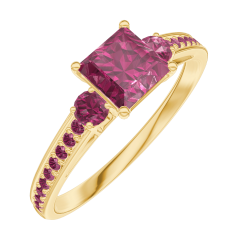 Pierścionek Żółte złoto 750 - Rubin „Księżniczka” 0.5 karat - Kamienie boczne Rubin - Oprawa Rubin